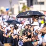 ونسّقت الشورت مع جاكيت رياضي بتدرجات البرتقالي، بتصميم قصير وواسع يمنح طابعًا عصريًا بلمسة رياضية.