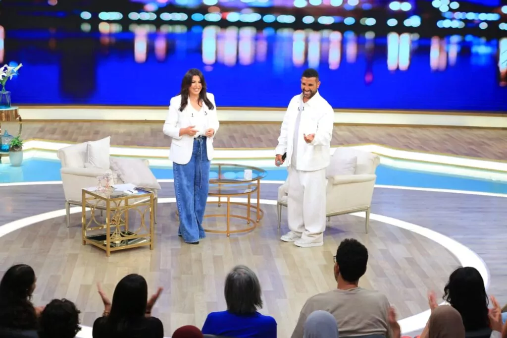 ليجيبها أحمد سعد مازحًا: “والله العظيم لم أرتدِ الأخرى القصيرة، فقلت أرتدي هذه حتى تكون شرعية”.