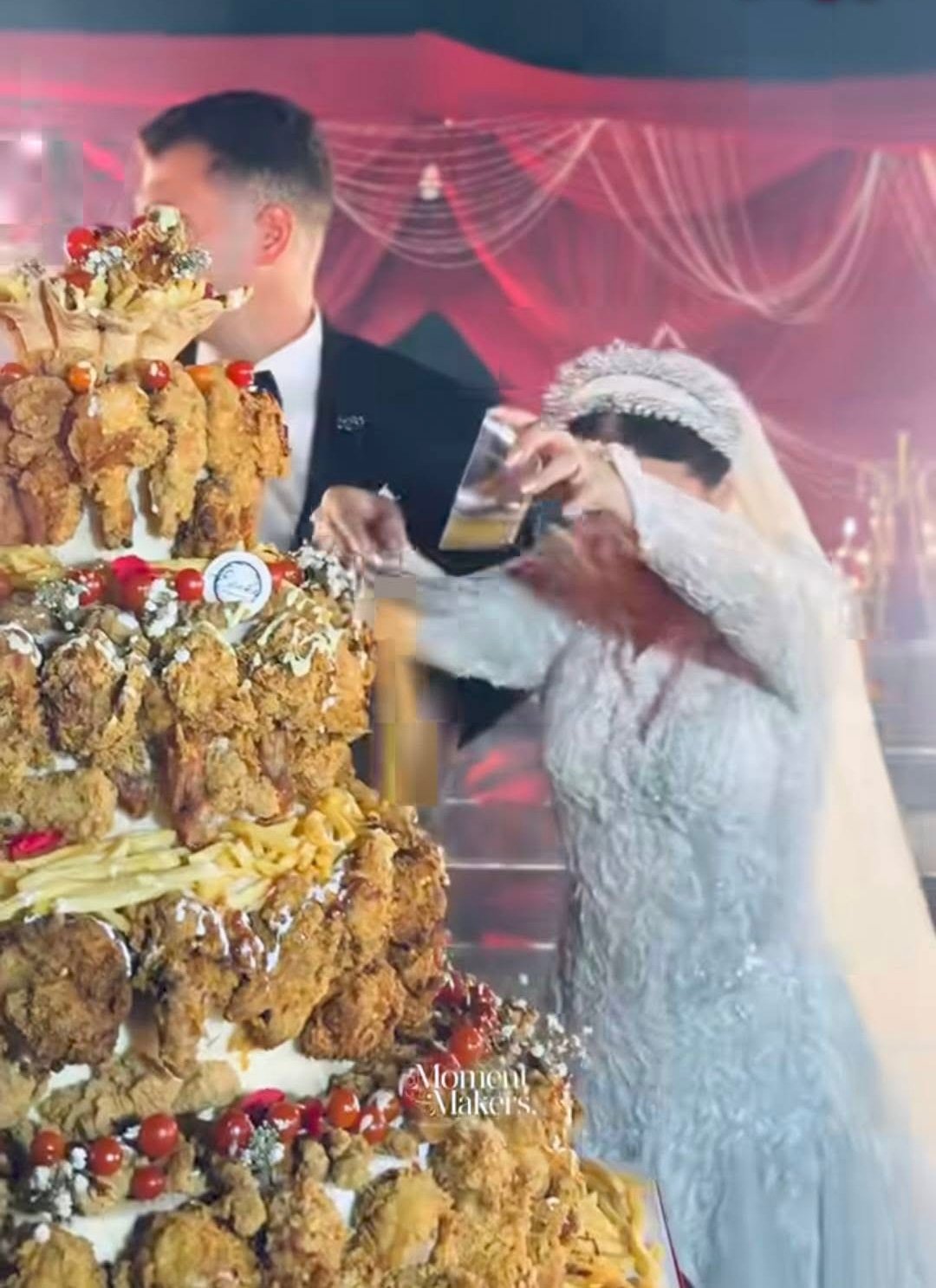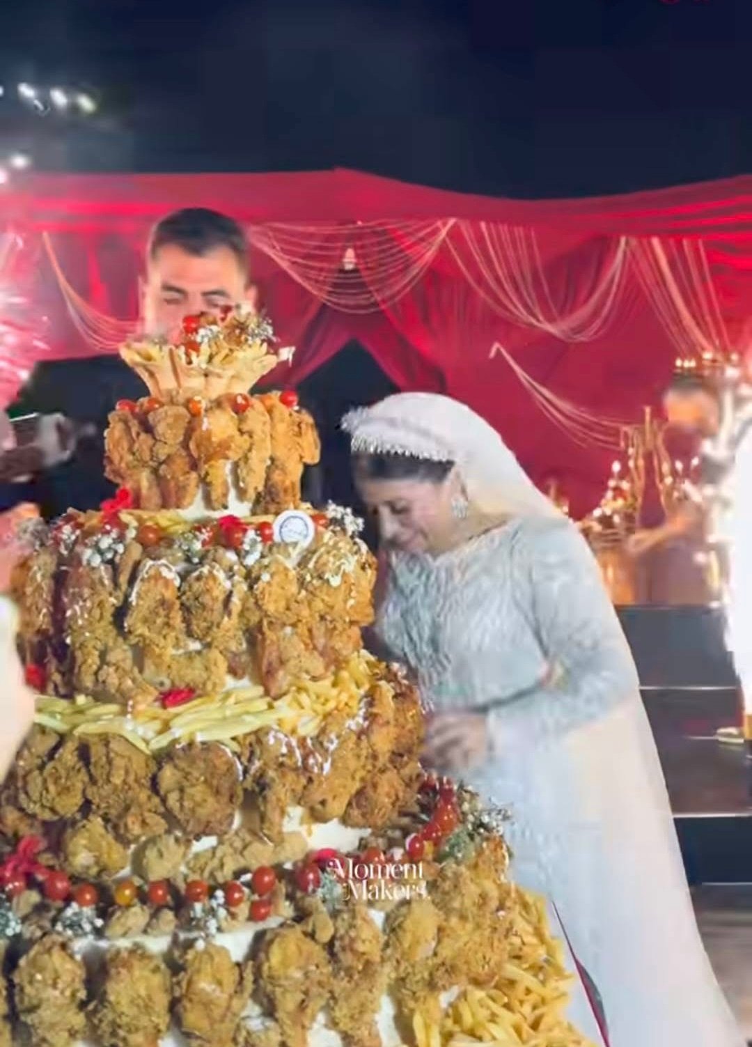 بينما استبدلت قالب التورتة التقليدي بوجبة فرايد تشيكن، في خطوة اعتبرها البعض جريئة وغير تقليدية.