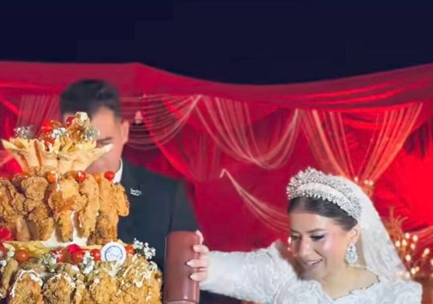 بينما استبدلت قالب التورتة التقليدي بوجبة فرايد تشيكن، في خطوة اعتبرها البعض جريئة وغير تقليدية.
