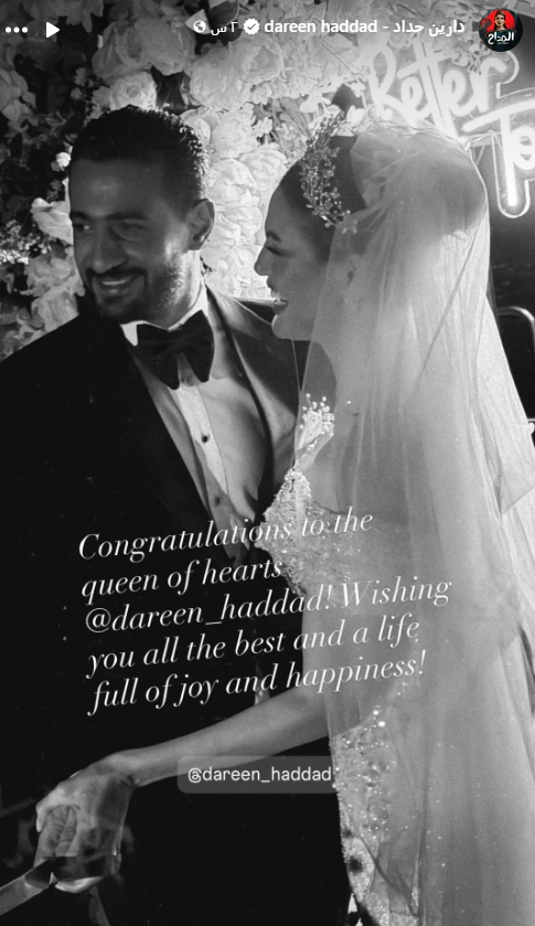 كما شاركت دارين جمهورها صورًا من حفل الزفاف عبر حسابها الرسمي على موقع تبادل الصور والفيديوهات «إنستجرام».
