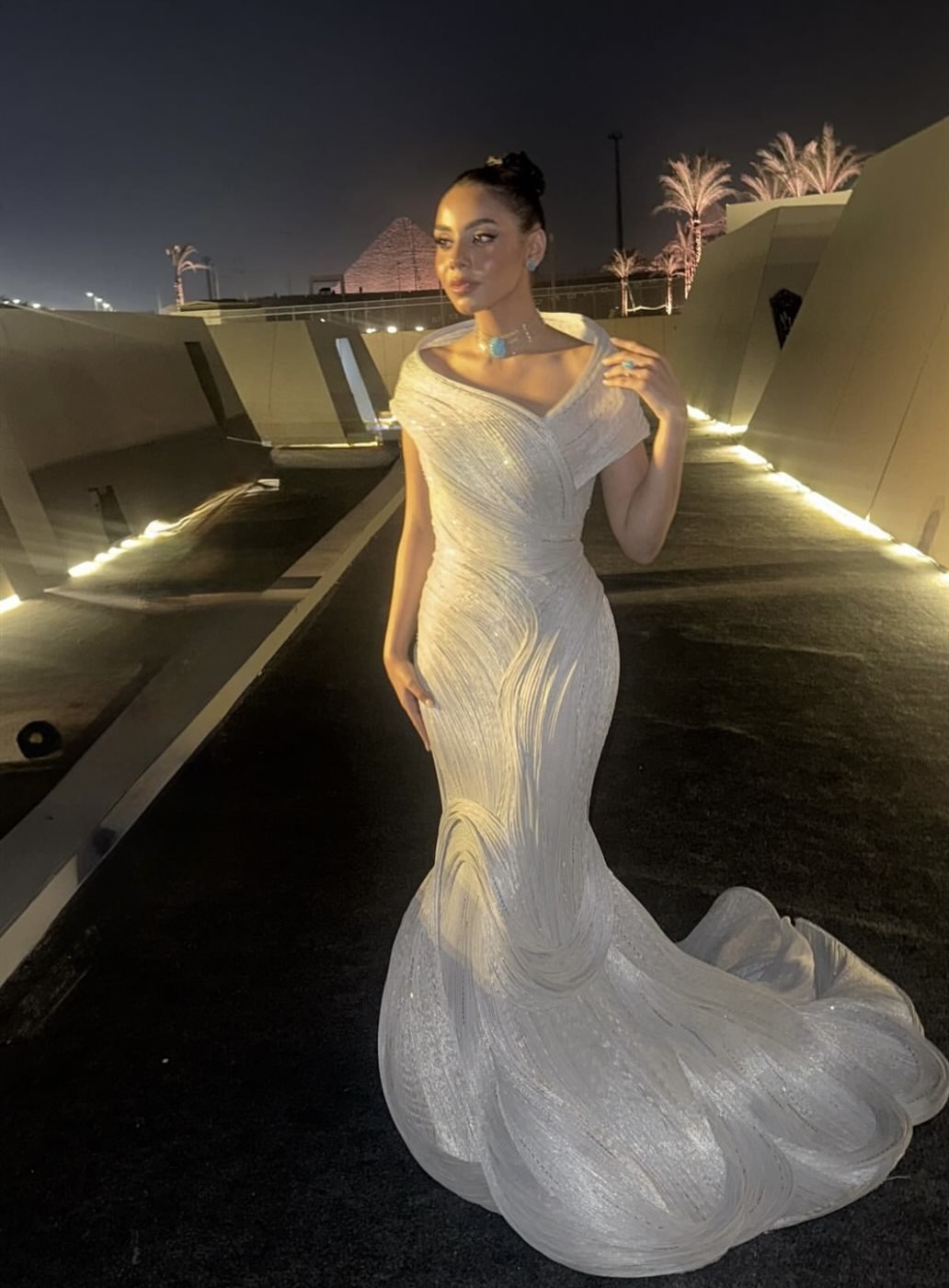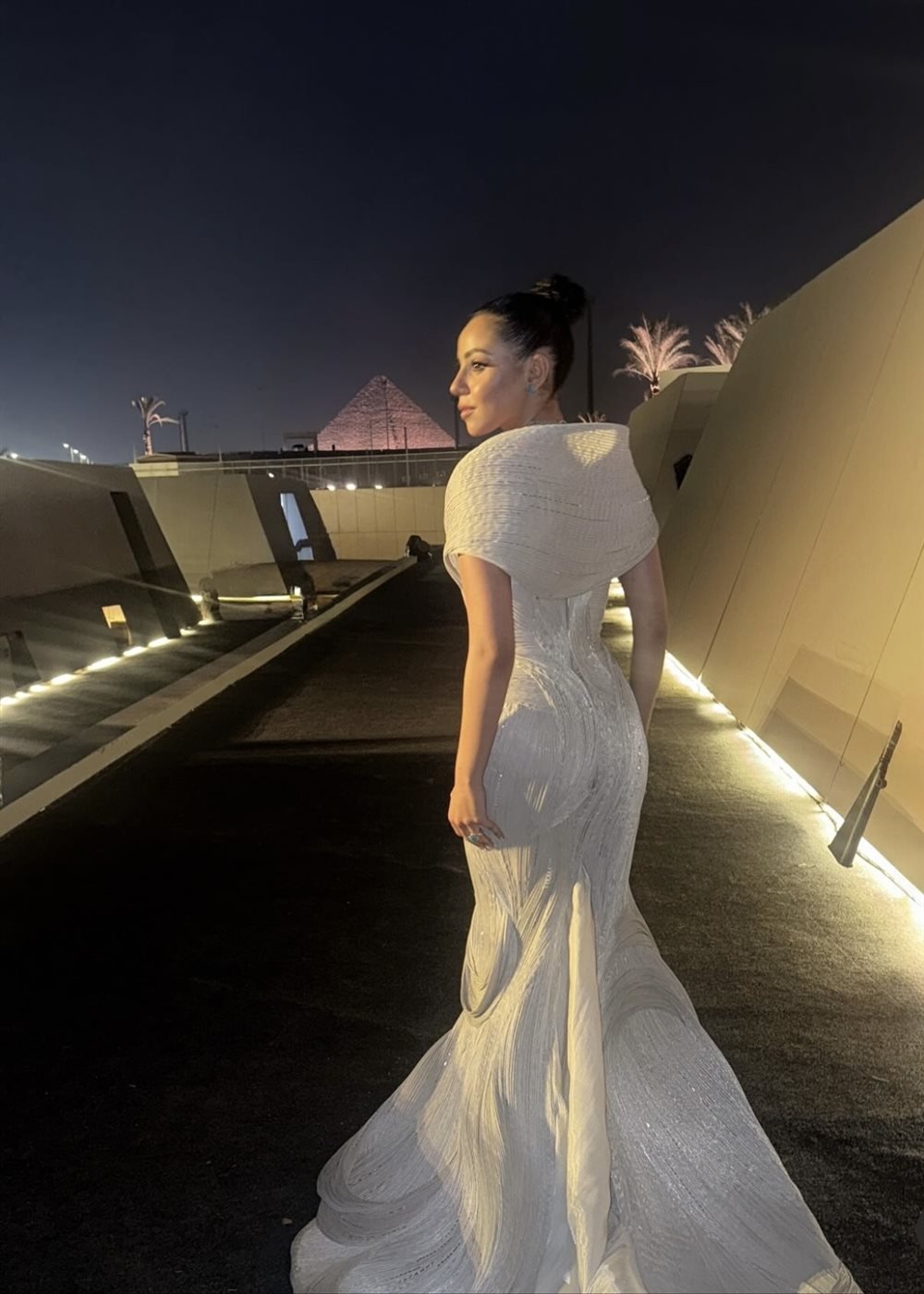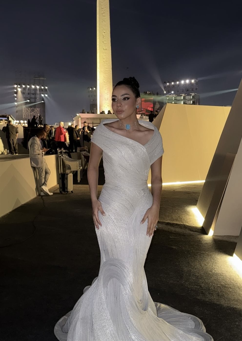 الفنانة المصرية حنين الشاطر تتألق بالأبيض في افتتاح المتحف المصري الكبير