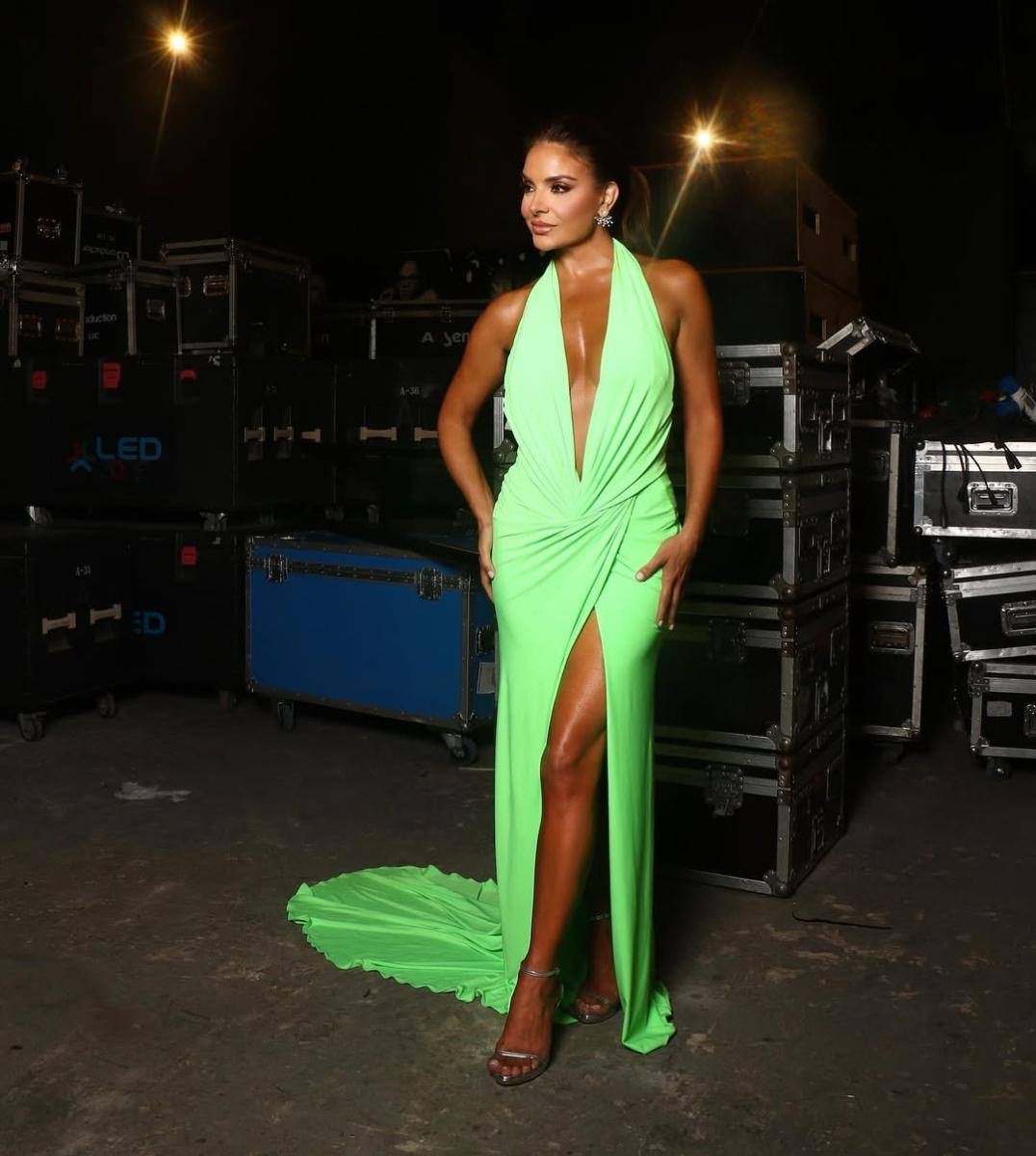 - هيلدا خليفة جذبت الأنظار بفستان جريء باللون الأخضر النيون من نيكولا جبران، تميّز بياقة بارزة وذيل طويل، نسّقته مع مجوهرات لافتة من Flemish by Tarfa Itani.