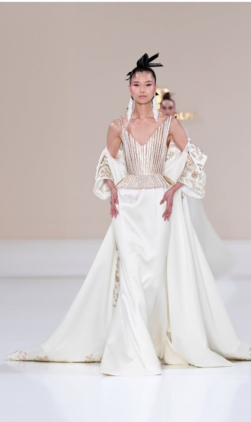 كما تميزت المجموعة بتزاوج ثقافات متعددة، من طيات الأوريغامي المعقدة التي أضفت أبعاداً هندسية مبتكرة، إلى لمسات آسيوية دقيقة في التطريز والأنماط الزهرية، ما خلق سردًا بصريًا يمزج بين بساطة الخطوط وفخامة التفاصيل.