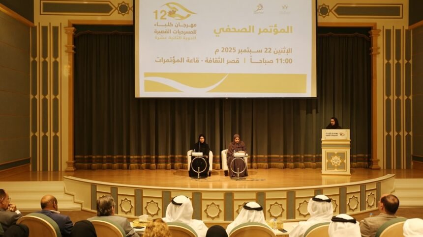 نظمت إدارة المسرح التابعة لدائرة الثقافة في الشارقة مؤتمراً صحفياً في قصر الثقافة للإعلان عن فعاليات الدورة الثانية عشرة من مهرجان كلباء للمسرحيات القصيرة.
