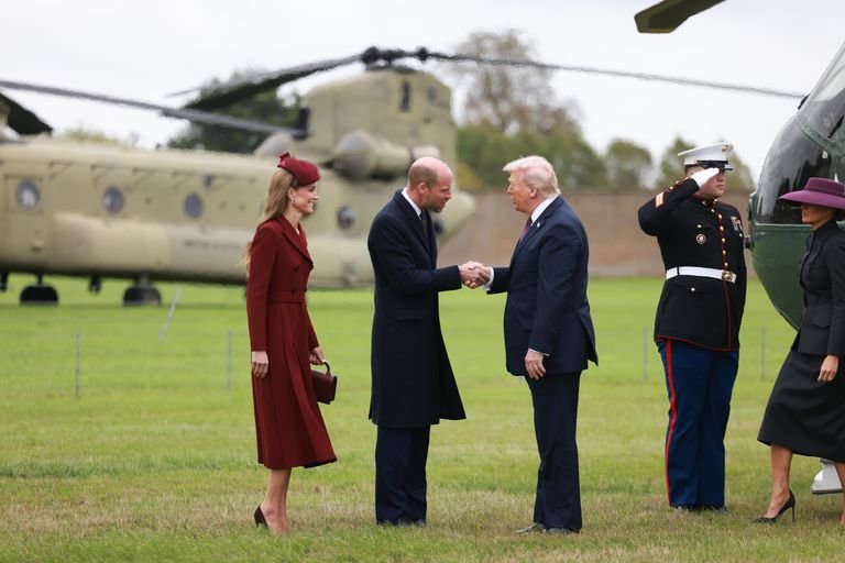 وبعد نزولهما من طائرة الرئاسة الأميركية إير فورس وان، صافح دونالد ترامب أفراد العائلة المالكة، ليتوجّه إلى كيت، قائلاً لها: أنتِ جميلة جدًا، جميلة جدًا، بحسب ما نقلته مجلة Hello! وصحيفة The Independent. وخلال المصافحة مع الأمير ويليام، خاطبه ترامب قائلًا: صديقي.