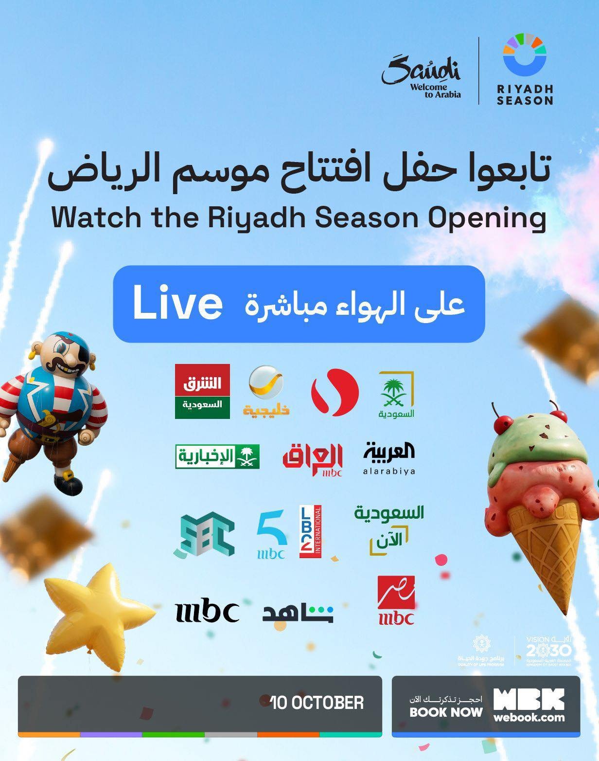 حيث قال: “تابعوا البث المباشر لحفل افتتاح موسم الرياض على الهواء.. في 10 أكتوبر.”