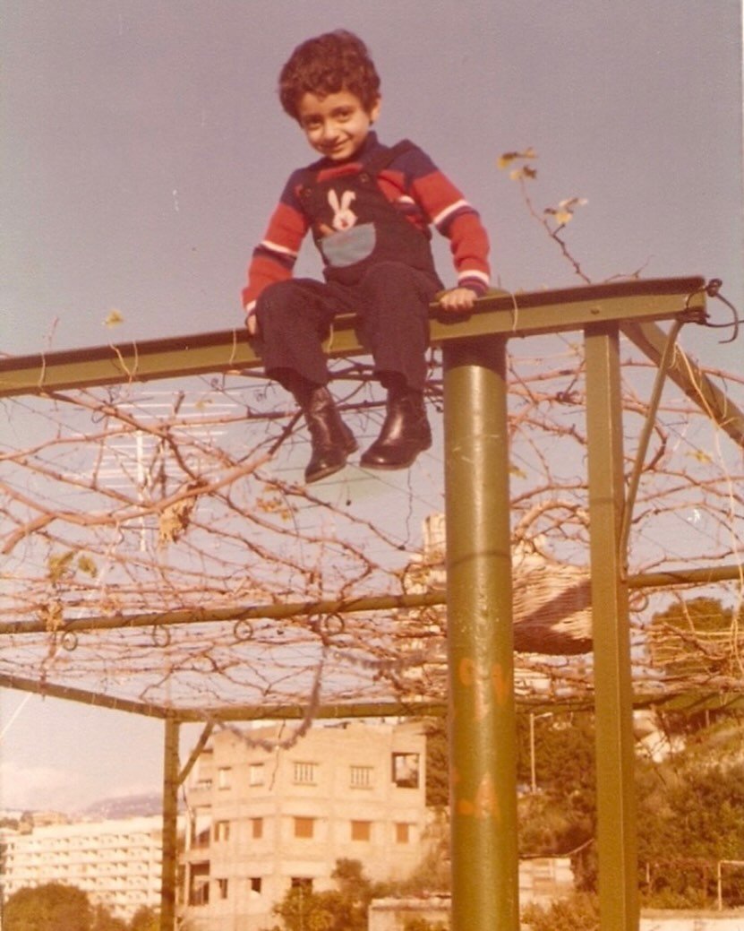 التُقطت في ثمانينيات القرن الماضي. وعلّق عليها قائلاً: “فوق العريشة سوا (ثمانينيات القرن الماضي)”.