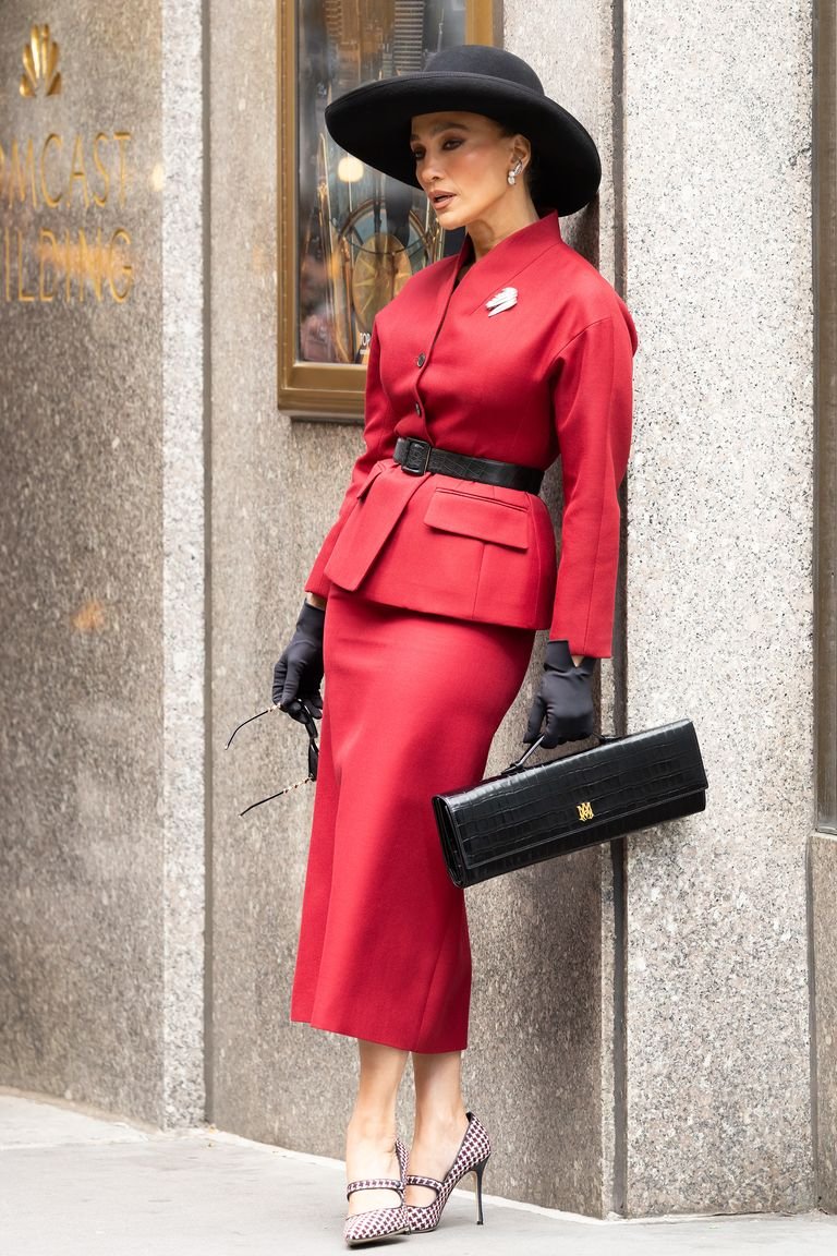 بدلة حمراء، قفازات أنيقة، وقبعة عريضة الحواف — إذا ظننت أنك رأيت جينيفر لوبيز تتجول في شوارع نيويورك مؤخرًا.