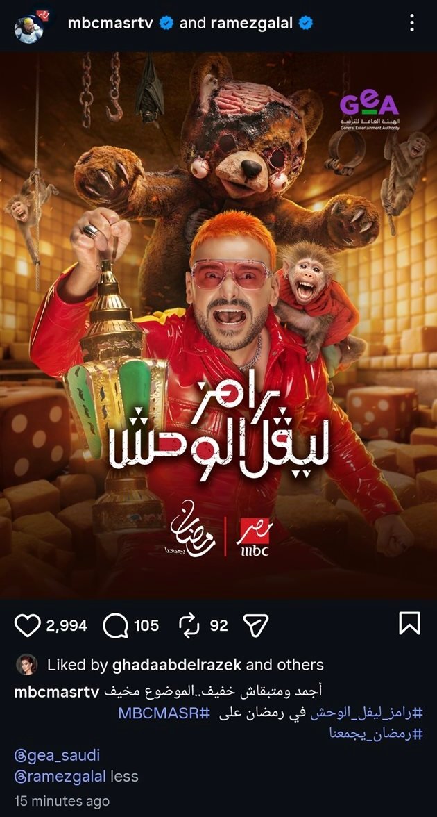 “بسم الله توكلنا على الله.. بعون الله البوستر الرسمي لبرنامج رامز ليفيل الوحش في رمضان 2026.”