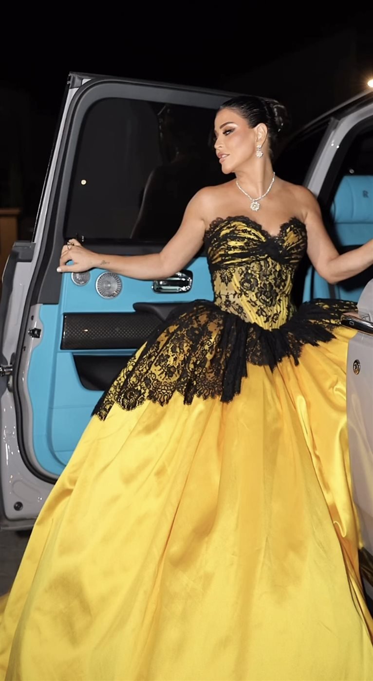 كما اختارت جومانا فستاناً أصفراً هائلاً من تصميم المصمم اللبناني إيليو أبو فايصل (Elio Aboufayssal).