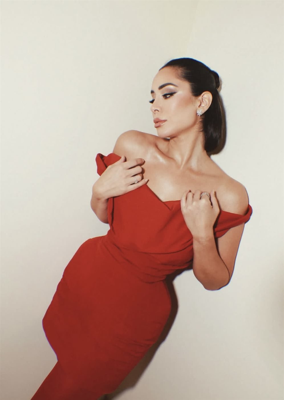جاءت لتمنح اللوك بريقًا محسوبًا دون أن تطغى على قوة اللون الأحمر.