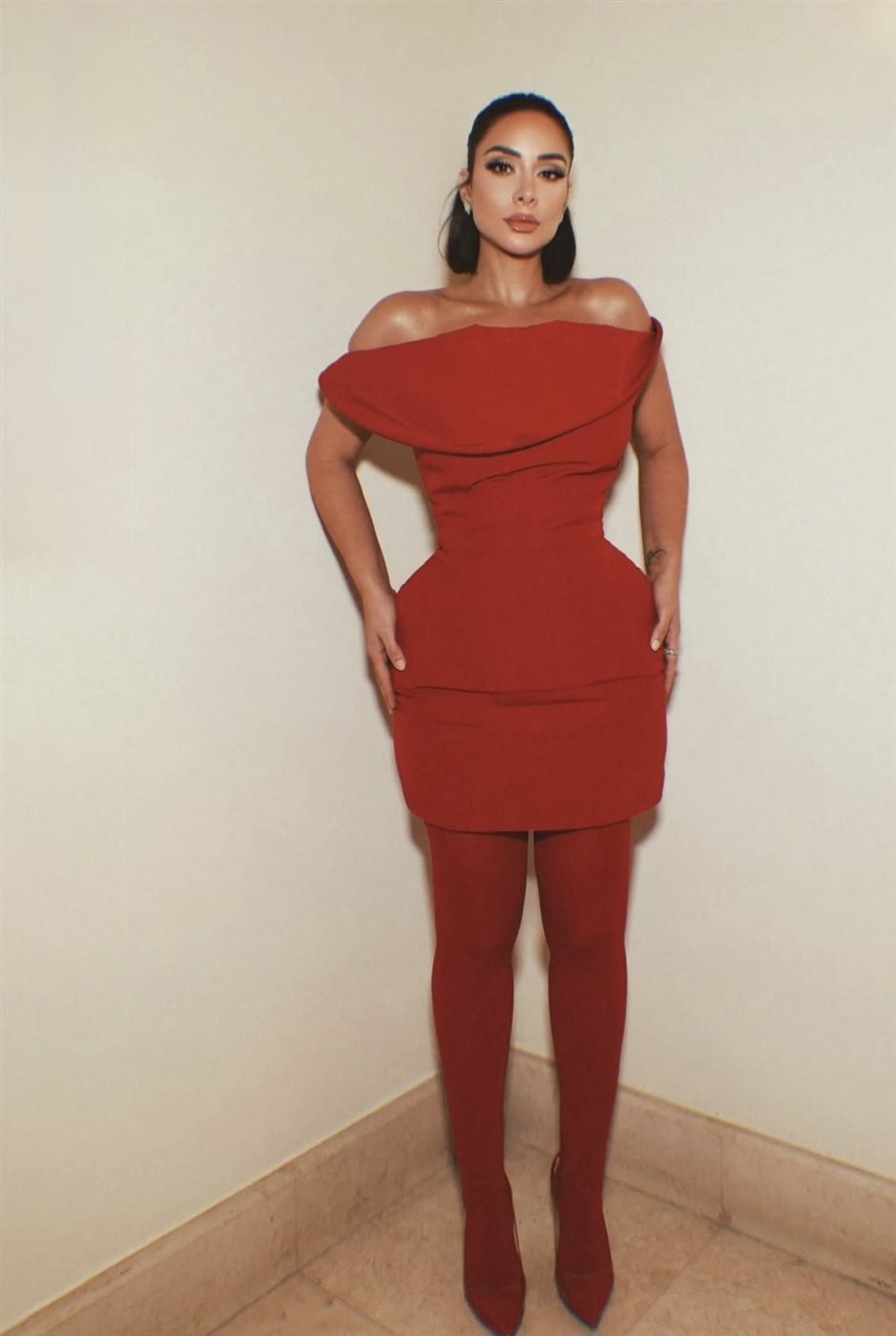 إنها إطلالة تجسد امرأة تعرف كيف تختار، وكيف تفرض حضورها بإحساس عالٍ بالموضة وثقة لا تخطئها العين.