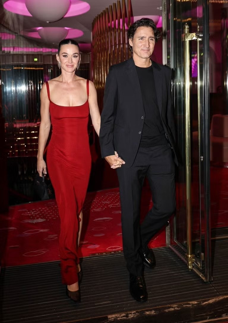 فاجأت النجمة العالمية كاتي بيري الجميع بإطلالتها إلى جانب رئيس وزراء كندا السابق جاستن ترودو.