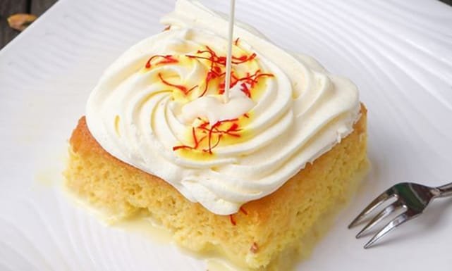 عند إخراج الكيكة من الفرن مباشرة، اسكبي الحليب المتبقي تدريجيًا على سطحها وهي ساخنة. وبهذا، تمتص الكيكة الحليب بالكامل وتصبح أكثر طراوة.