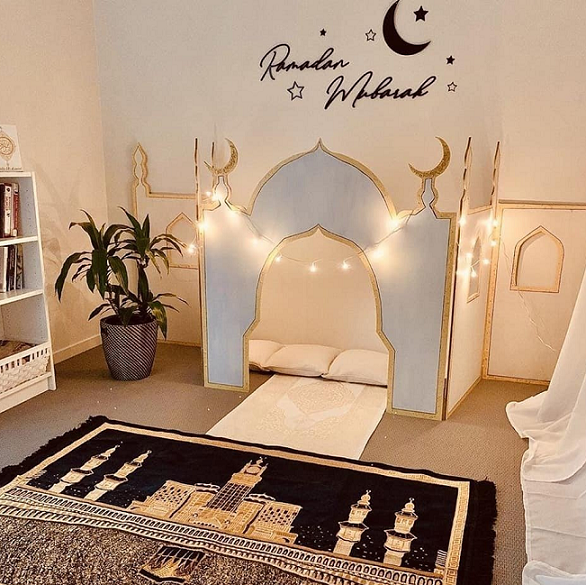 لتعزيز الجانب الروحي، يمكن تخصيص زاوية صغيرة تحتوي على المصحف، مسبحة، وديكورات رمضانية، ما يشجع أفراد الأسرة على تلاوة القرآن والدعاء، ويجعل هذا الركن مكاناً للسكينة والتأمل داخل المنزل.