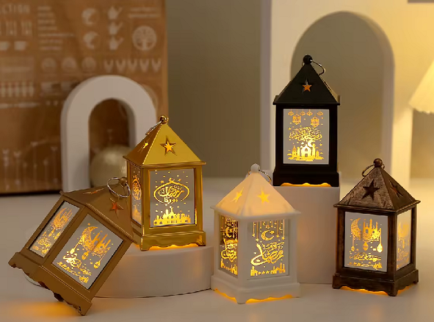 الفانوس الرمزي لا يزال عنصراً أساسياً، يزين المداخل والنوافذ بألوان دافئة. ولإضفاء لمسة حديثة، يمكن استخدام سلاسل LED توزع الضوء بشكل خافت على الغرف أو الطاولة الرمضانية، ما يخلق جواً ساحراً يمزج بين الأصالة والمعاصرة ويضفي دفئاً بصرياً على أجواء المنزل.