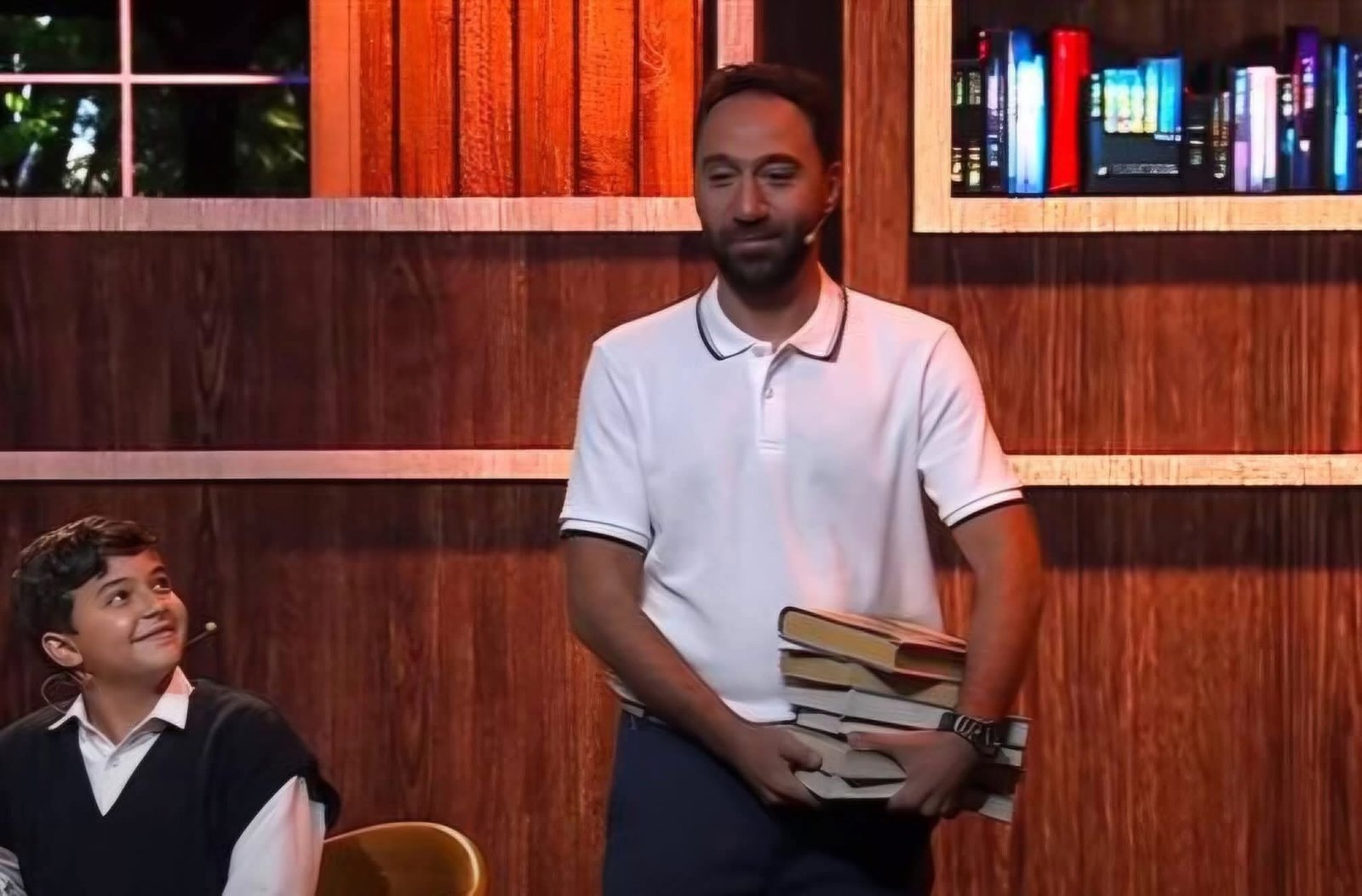 وقال محمد سلام في كلمته داخل العرض، متقمصًا دور المعلم: “لو بدأنا نتحدث عن سيناء، قد لا يكفينا عام كامل لنروي كل ما تحمله من تاريخ وأسرار. أحضرت لكم هذه الكتب لتقرؤوها وتعرفوا كل شيء عنها، ستجدون فيها أن لسيناء أسماء عديدة، فهناك من يطلق عليها أرض التجلي الأعظم، وآخرون يسمونها أرض الفيروز أو أرض القمر.”