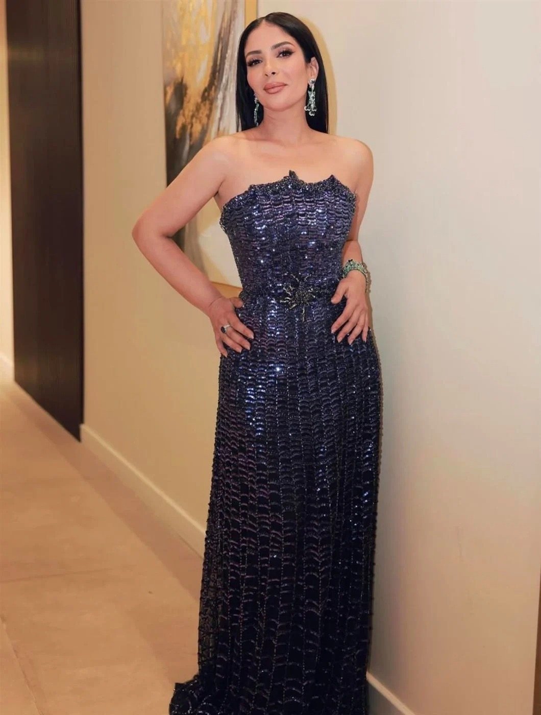 فيما سبق أن ارتدت من تصاميمه في مهرجان كان 2023 وفِي Joy Awards 2025.