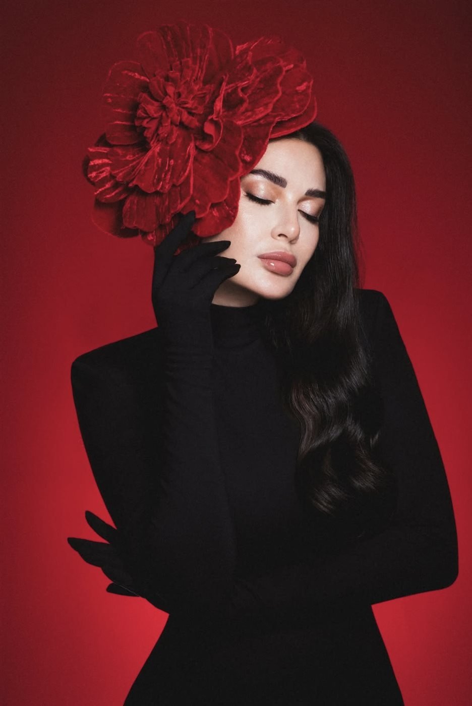 المكياج بدرجات دافئة وتسريحة الشعر المموجة أكملت المشهد، حيث عكست الصور توازنًا بين القوة والنعومة، متسقة مع فكرة الحب والطاقة المرتبطة باللون الأحمر.