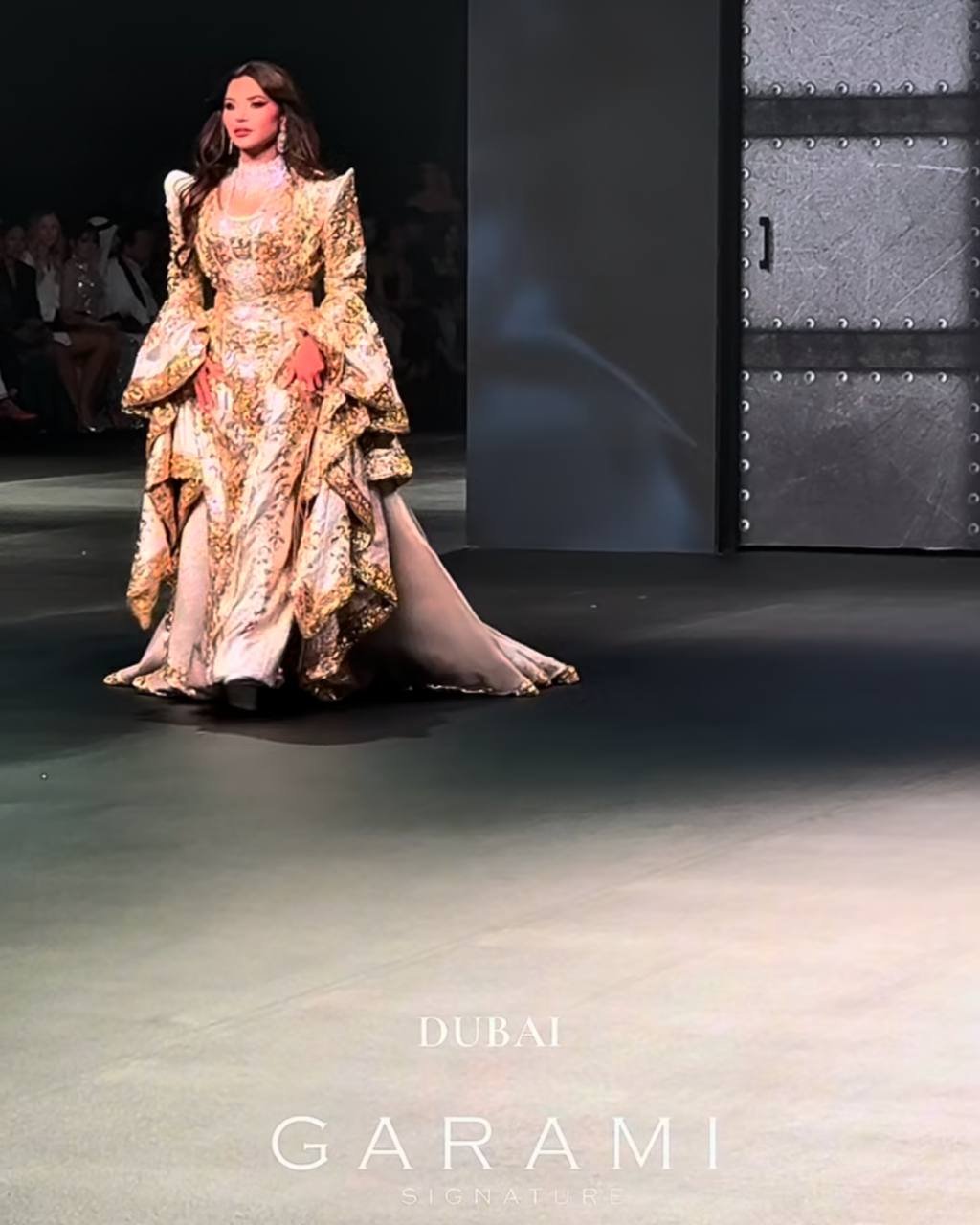 اختارت نهى نبيل ثوبًا إماراتيًا فاخرًا باللون الذهبي من مجموعة Garami Signature.