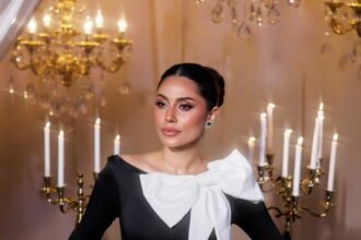 حيث اختارت أرتشيل طقماً باللون الرمادي يتألف من جاكيت كلاسيكية وبنطلون واسع القَصّة من توقيع الدار، ونسّقته مع قميص أبيض وربطة عنق مخططة بالأسود والأبيض، لتقدم إطلالة رسمية جريئة جمعت بين الصرامة والأنوثة. وأكملت اللوك بنظارات كبيرة ذات تصميم عصري، ما أضفى لمسة إضافية من الحداثة والتميّز.