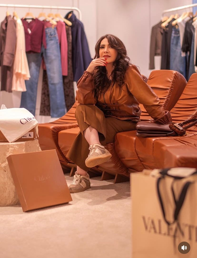 وفي إطلالة أخرى أكثر دفئاً وأناقة، اختارت هدى حسين لوكاً كاملاً من الجلد باللون الكاميل، حيث تألقت بجاكيت مزينة بسحّابات وحزام منحها مظهراً عملياً عصرياً. وبدّلت بين حذاء Pump كلاسيكي يجمع بين الكاميل والأسود وحذاء رياضي بألوان ترابية لمزيد من الراحة، وأكملت الإطلالة بحقيبة كبيرة باللون البني.