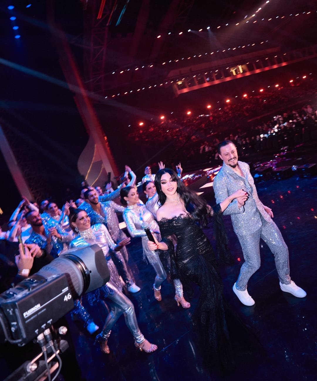 منذ ظهورها الأول على المسرح، لفتت هيفاء وهبي الأنظار بإطلالة أنيقة جمعت بين الفخامة والرقي.