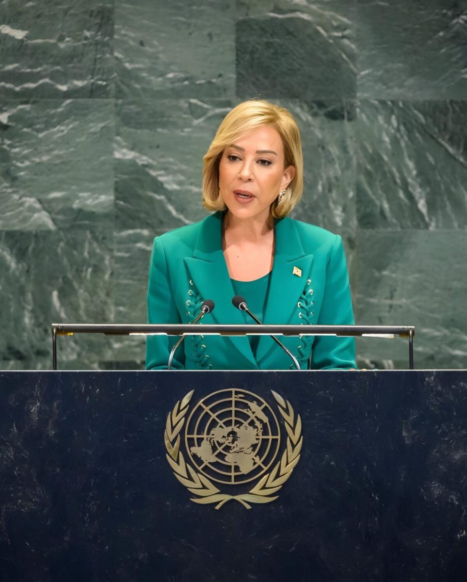 فيما اختارت السيدة الأولى اللبنانية نعمت عون بدلة باللون الأخضر الداكن، جمعت بين الطابع الرسمي واللمسة الأنثوية الهادئة. تألف التصميم من توب بسيط وسترة كلاسيكية مزينة بشرائط ناعمة، وأكملت الإطلالة بمجوهرات رفيعة وتسريحة قصيرة أنيقة مع مكياج ترابي طبيعي، مما أضفى على حضورها توازناً وهدوءاً لافتين في نيويورك.