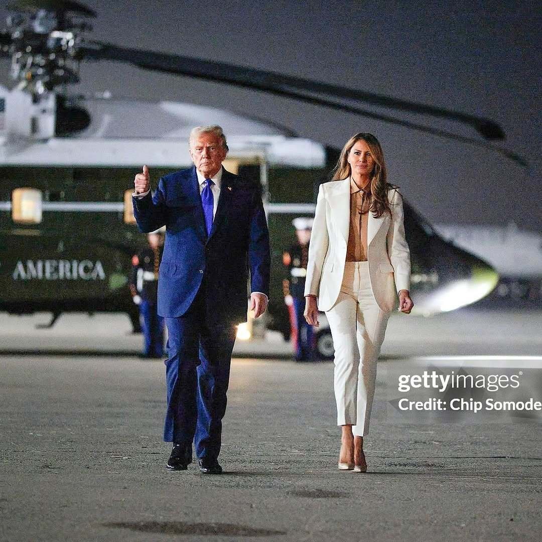 أما ميلانيا ترامب، فاعتمدت اللون الأبيض كلون رئيسي يزاوج بين القوة والرقي، فارتدت بليزر ضيقاً فوق قميص بيج محايد، مع سروال أبيض كلاسيكي. واختارت تسريحة متموجة ناعمة ومكياجاً ترابياً بسيطاً، ليعكس حضورها مزيجاً من الأناقة والسكينة.