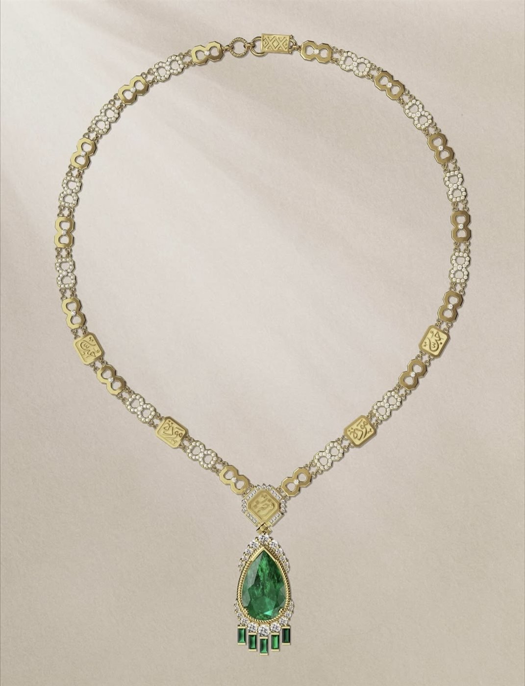 حيث اختارت عقد Art Deco Enchanted Necklace المرصع بحجر زمرد بوزن 7 قيراطات.