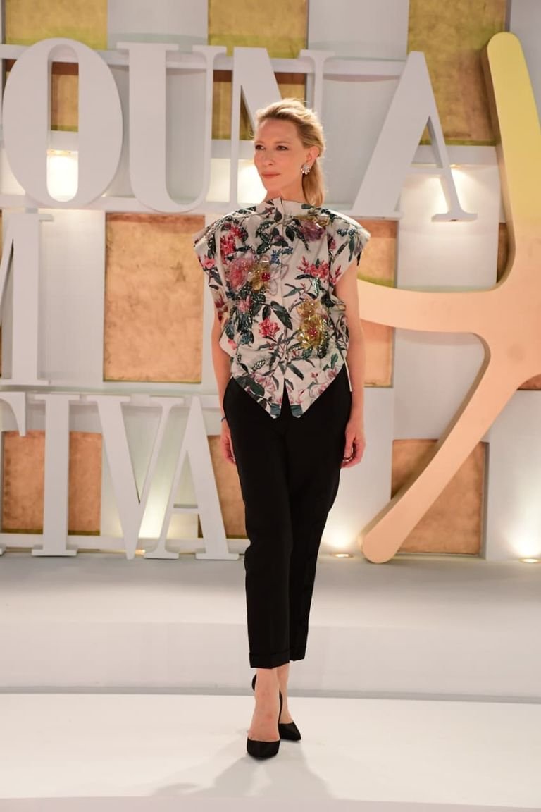 ظهرت النجمة العالمية كيت بلانشيت على السجادة الحمراء لمهرجان الجونة السينمائي في دورته الثامنة.