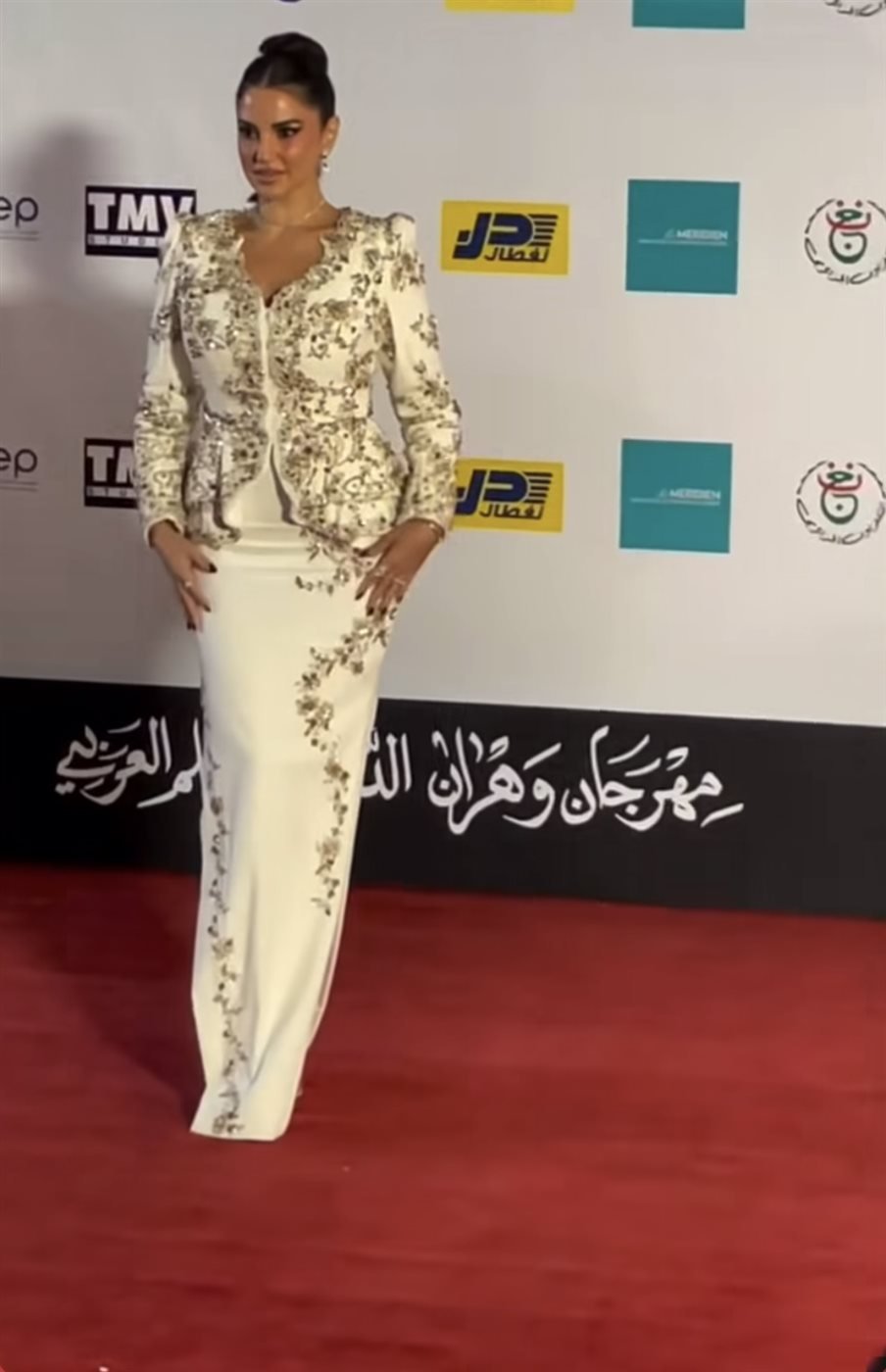منذ لحظة وصولها إلى السجادة الحمراء، استحوذت درة على اهتمام الحضور بإطلالتها البيضاء المطعّمة بالتفاصيل الذهبية الدقيقة.