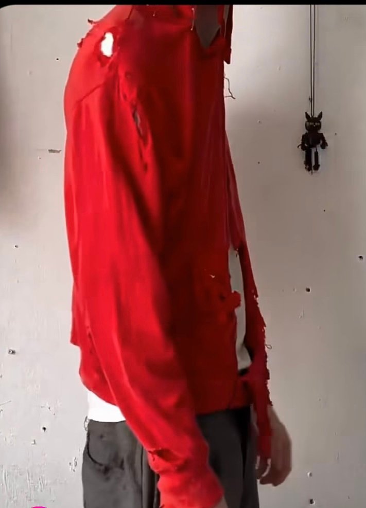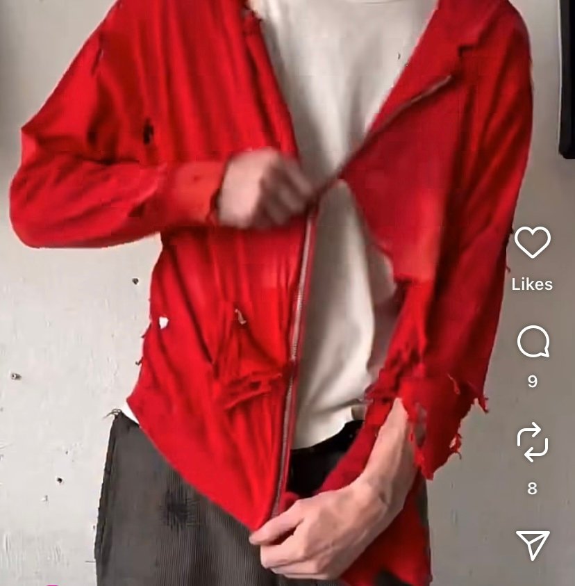 كما تتميز السترة، التي أطلق عليها البعض “الجاكيت المدمّر”، بتمزقات وشقوق متعمّدة وتفاصيل توحي بالاستخدام المفرط.