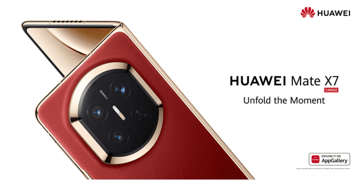 يدفع هاتف Mate X7 حدود التصميم القابل للطي، إذ يتميز بهيكل نحيف ومتين وأداء قوي، إلى جانب نظام كاميرا بمستوى الهواتف الرائدة.