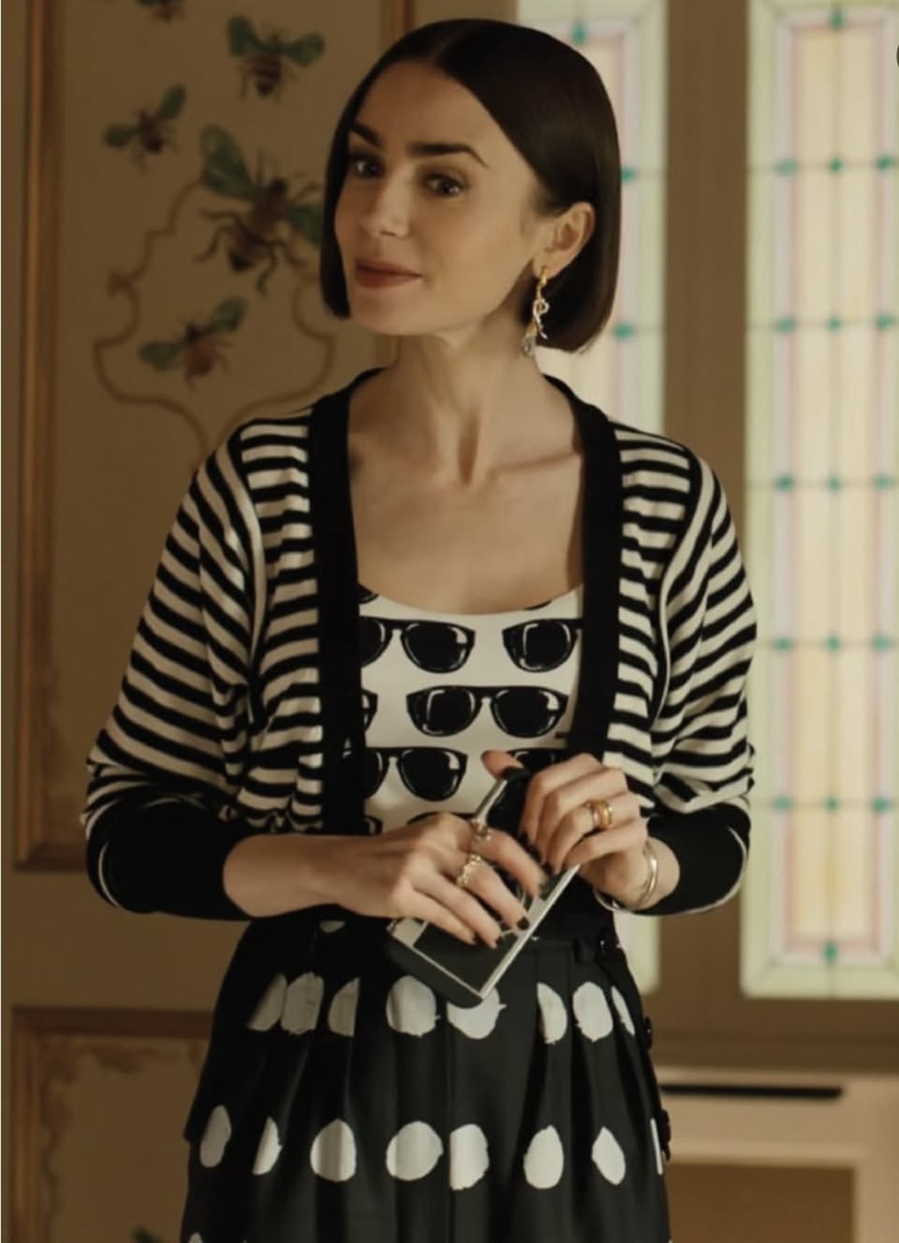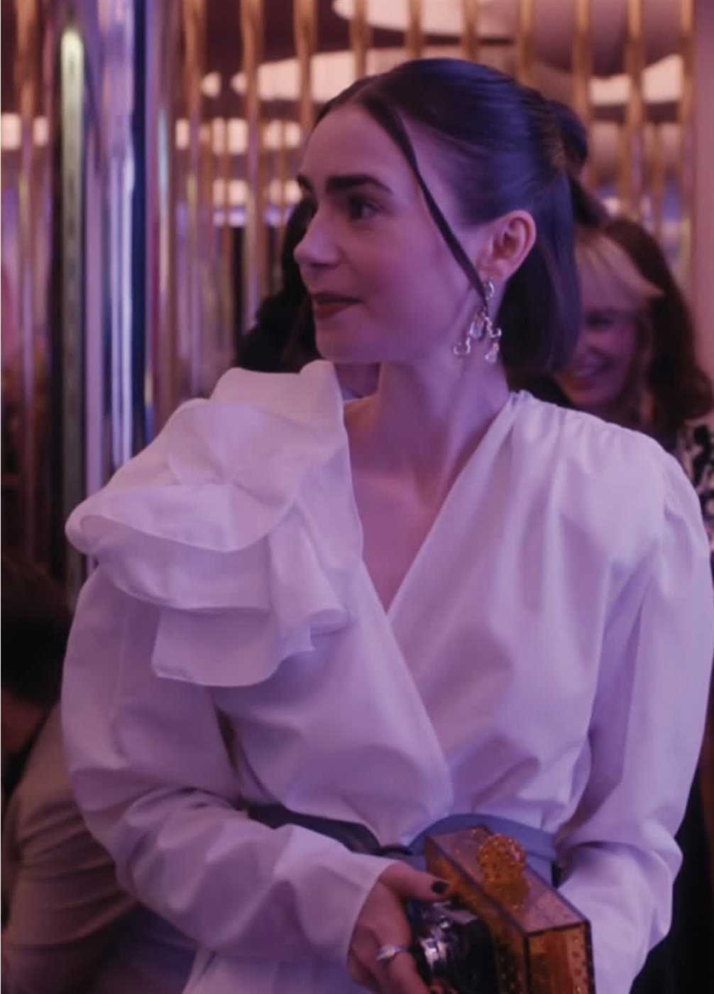 وعلى مستوى التفاصيل، ظهرت إميلي في عدد من المشاهد وهي تتزين بقطع لافتة.