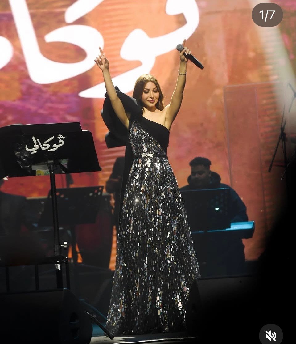 فيما رددها الجمهور معها بحماس، في أمسية غنائية اتسمت بالطاقة والدفء.
