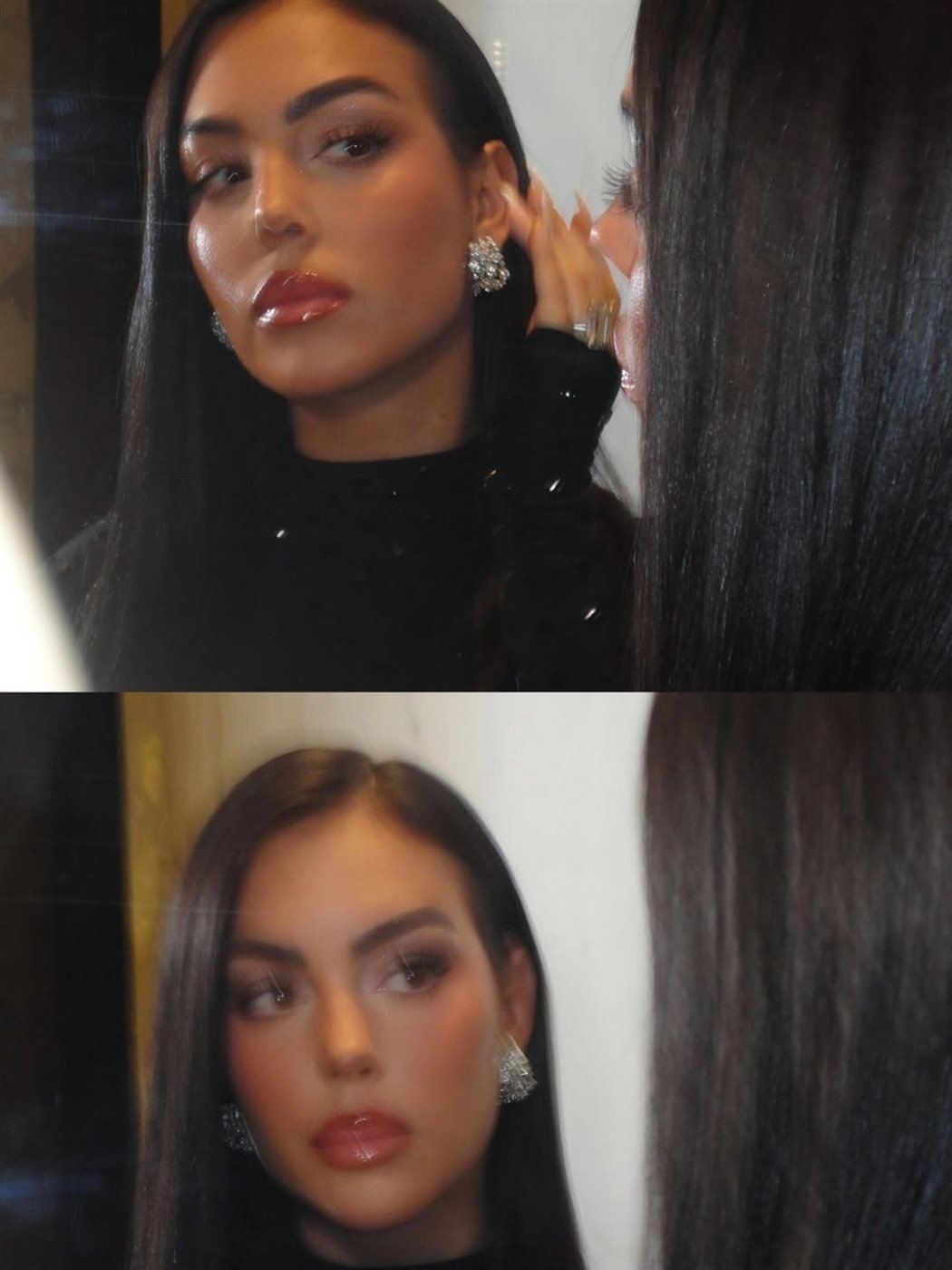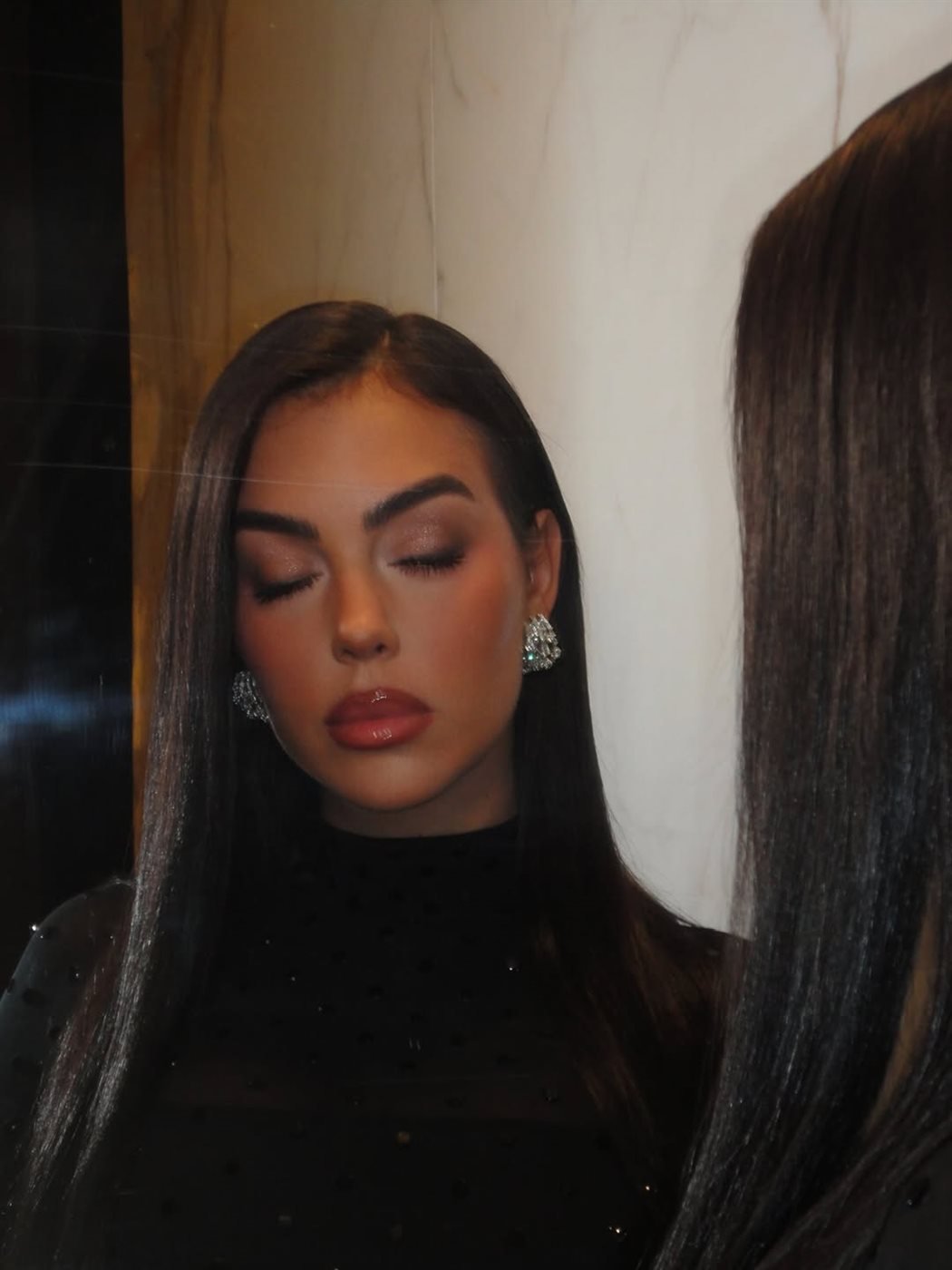 كما ظهرت جورجينا خلال الصور مرتدية فستانًا أسود أنيقًا مع مكياج هادئ، ما أظهر تواضعها وجمالها في الوقت نفسه.