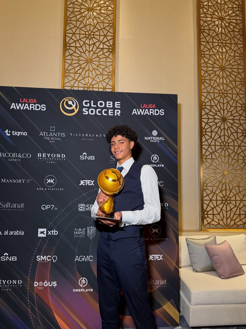 وفي بعض الصور، حمل كريستيانو جونيور الكأس الذي حصل عليه والده.