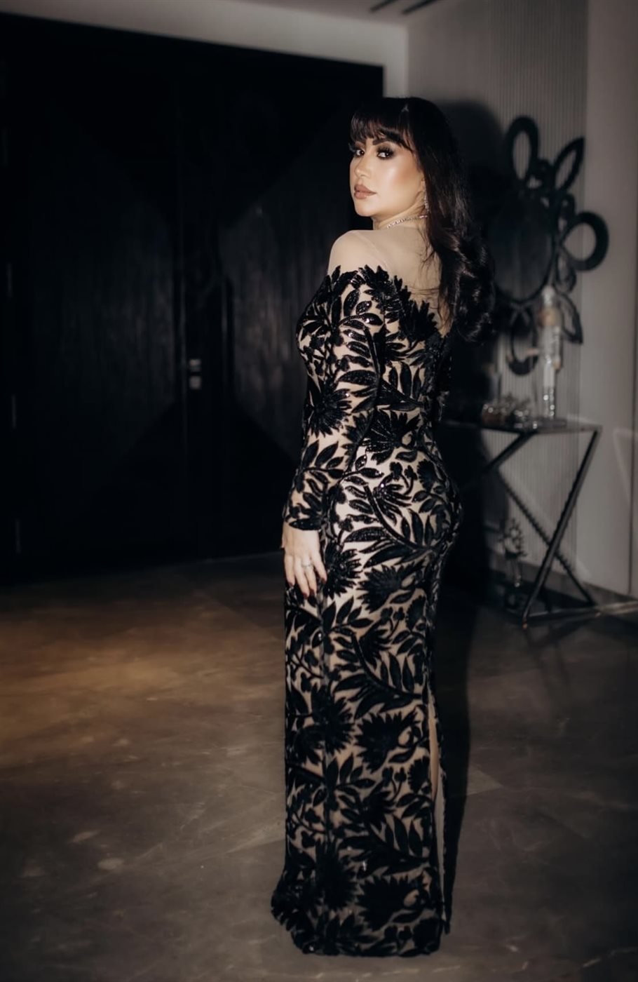 فيما جاء بقصة منسدلة أبرزت القوام بأسلوب راقٍ دون مبالغة.