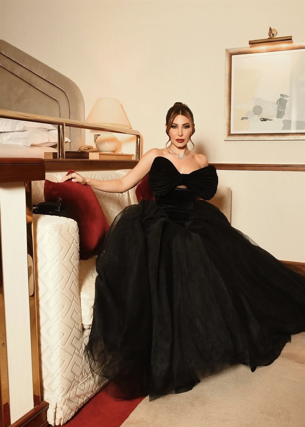 فستان أسود ملكي، تنسيق مدروس، وتفاصيل تعكس ذوقًا رفيعًا، جميعها حوّلت لحظات ما قبل العرض إلى لوحة فنية متكاملة.
