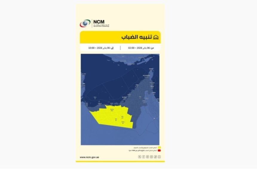 حذر المركز الوطني للأرصاد من تشكل الضباب وانخفاض مدى الرؤية الأفقية، اليوم الثلاثاء.