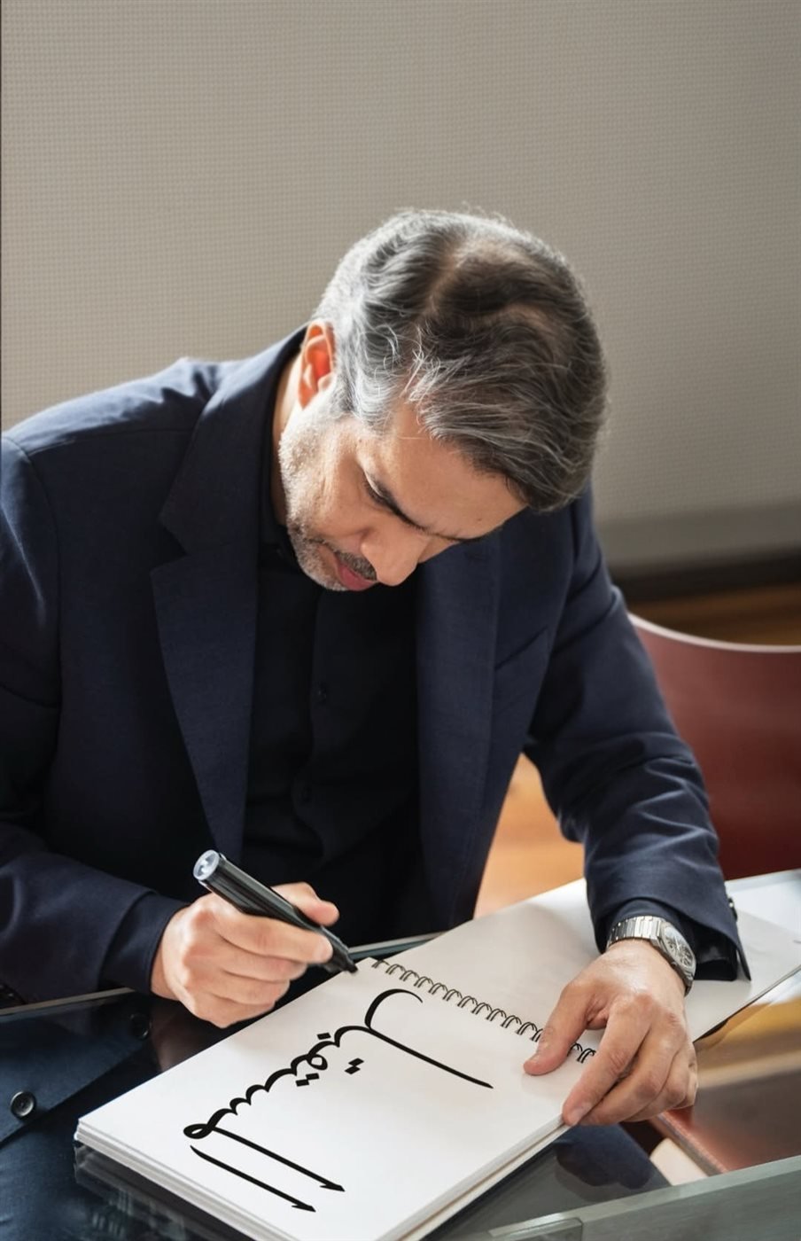 حيث تمزج بين فن الخط العربي المعاصر والرؤية التصميمية الإيطالية في تجربة فريدة.