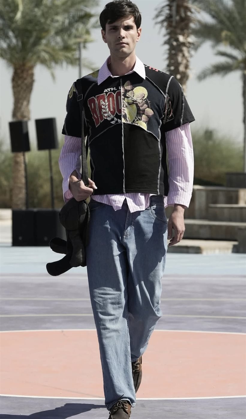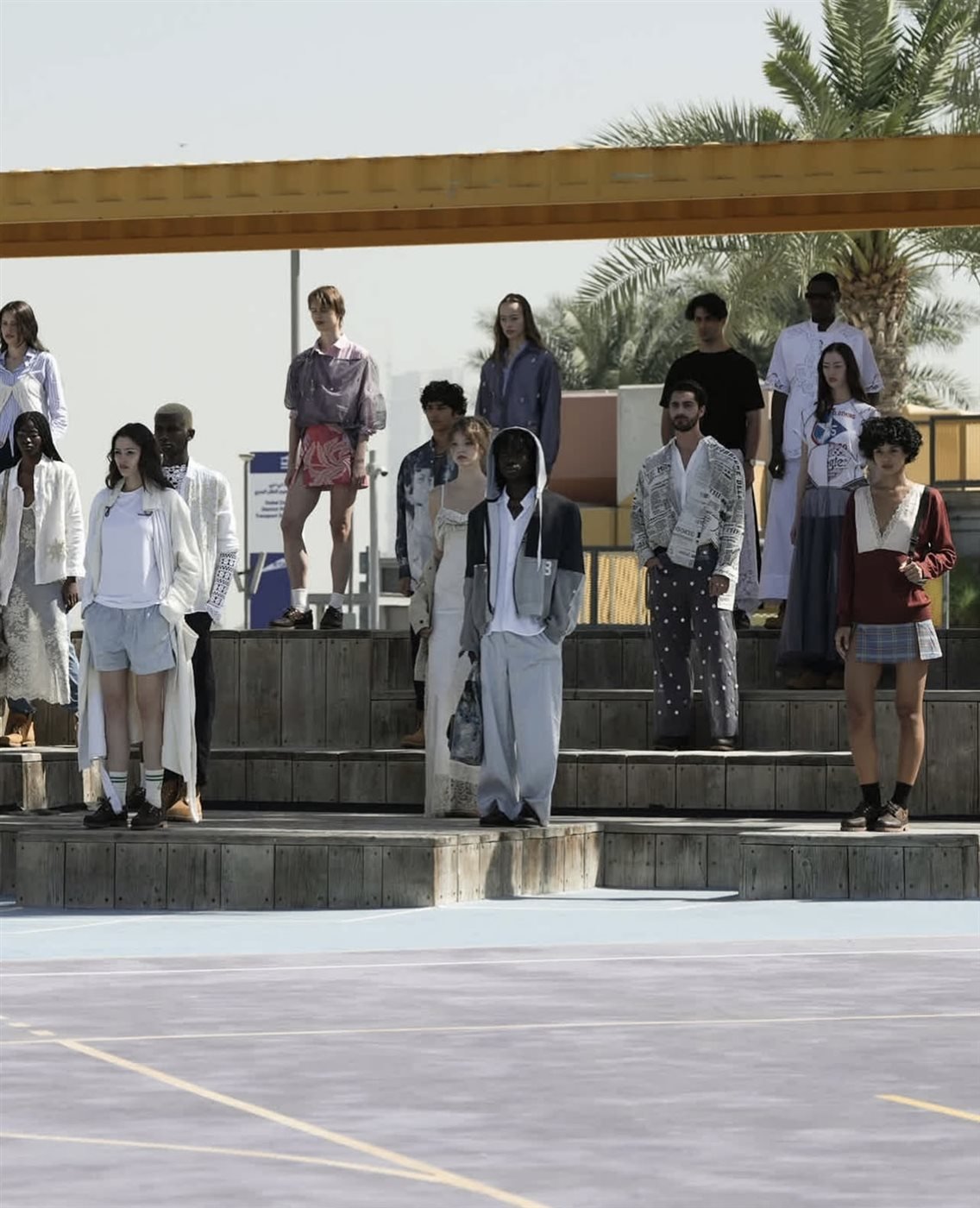 على منصة العرض ضمن فعاليات أسبوع دبي للموضة، تميزت المجموعة بتوازن لافت بين القصّات الحادة والخامات القوية، مع عناصر مستوحاة من ملابس العمل والشارع.