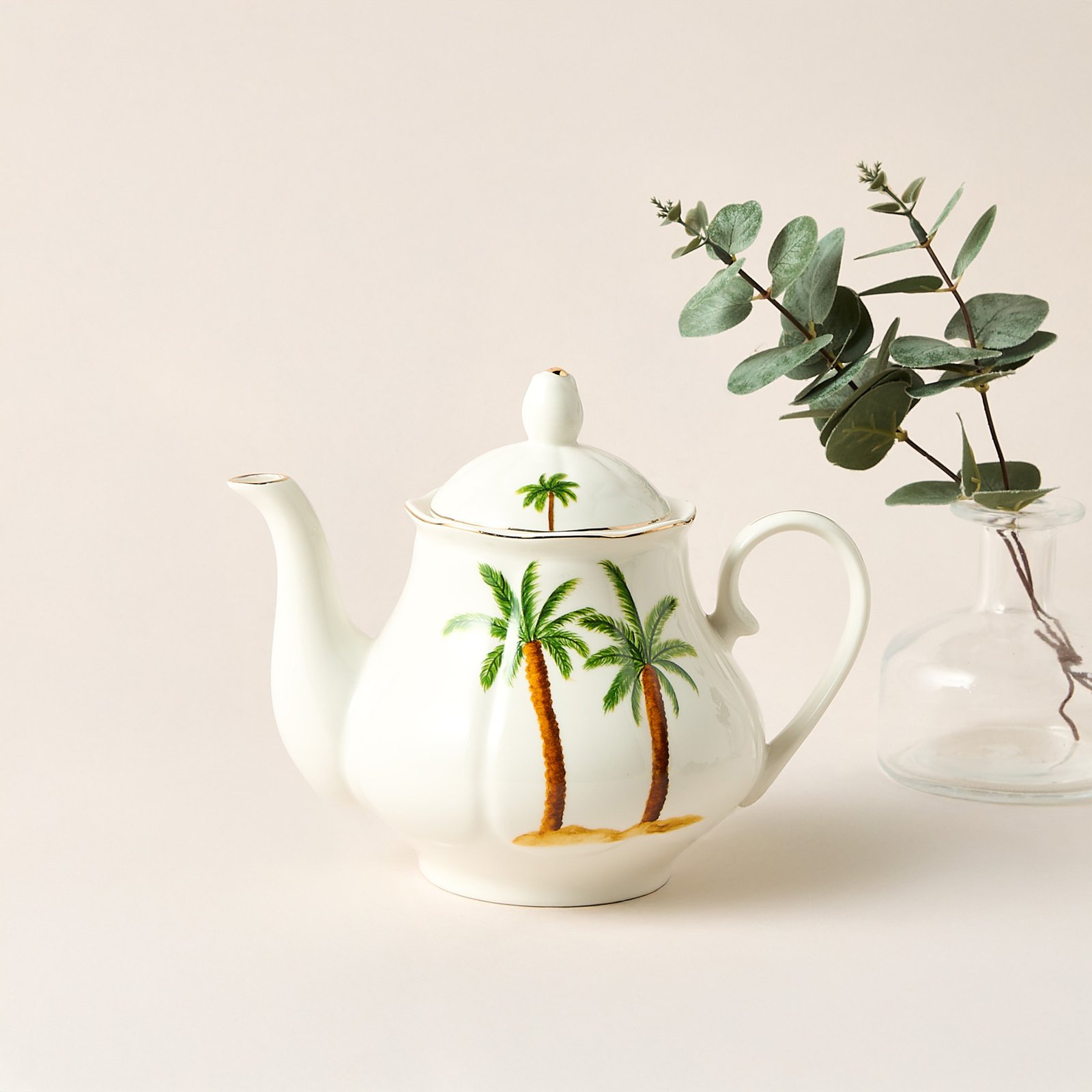 إبريق شاي من البورسلين المتين (بون تشاينا) بنقوش شجر النخيل (من ’مجموعة النخلة‘ أو Nakhla Collection) –