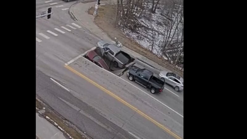 حيث انشقت الأرض فجأة وابتلعت سيارتين كانتا متوقفتين عند إشارة مرور، في مشهد مرعب وثقه مقطع فيديو متداول بسرعة على مواقع التواصل الاجتماعي.