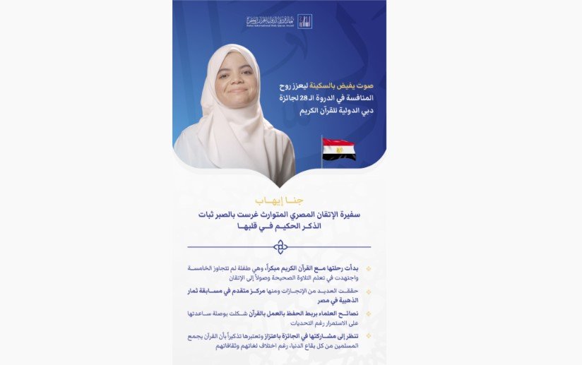 وتمثل المصرية جنا إيهاب محمد رمضان (15 سنة)، الطالبة في الصف الأول الثانوي الأزهري، نموذجاً مشرفاً لأصحاب الموهبة القرآنية الصغار الذين جمعوا بين الإتقان المبكر والطموح الكبير.