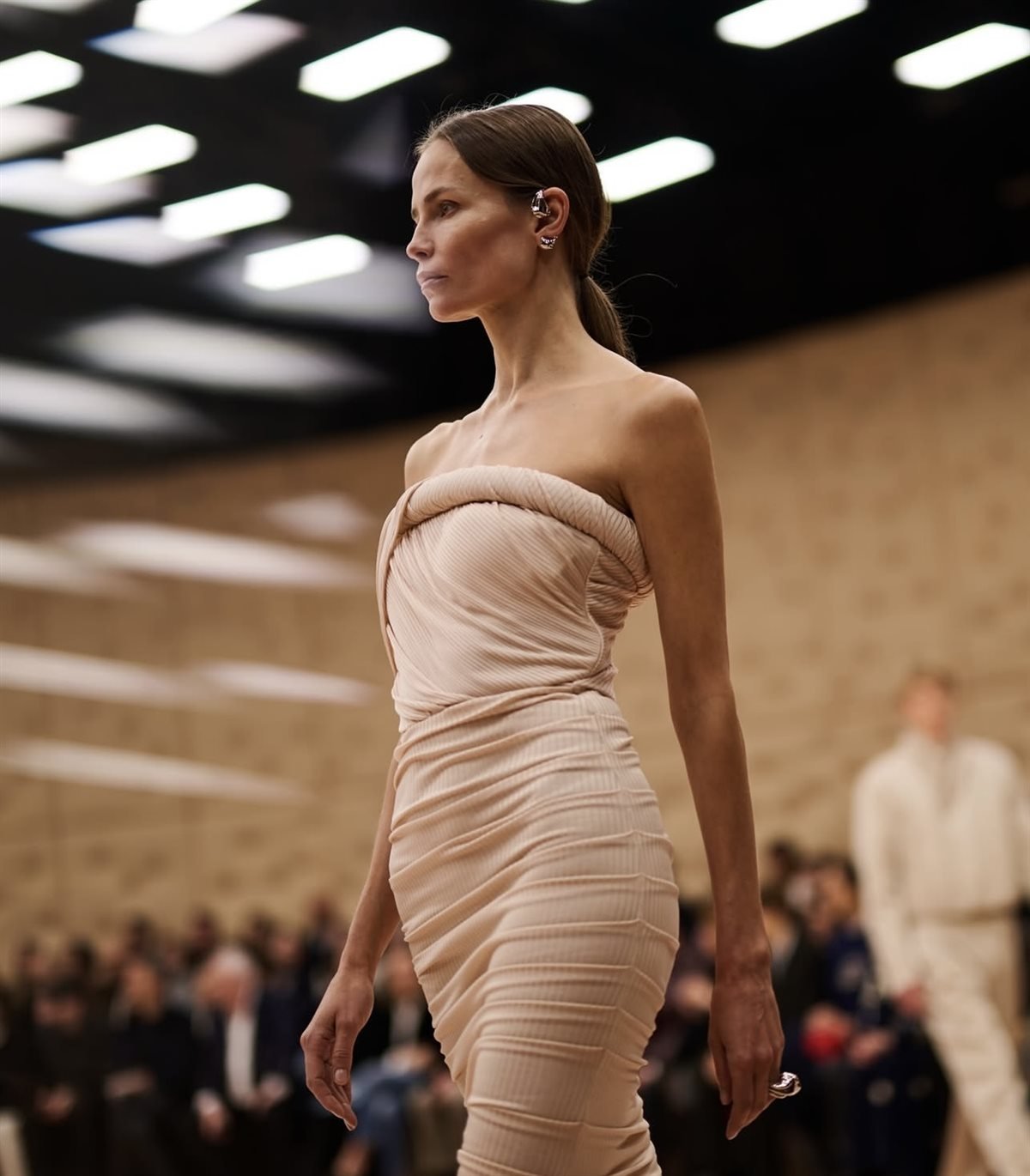 التفاصيل المعدنية، كالسحّابات والخطوط الحادة، بدت كأنها مستوحاة مباشرة من عالم السيارات الرياضية، لتؤكد هذا الحوار المستمر بين التقنية والموضة.