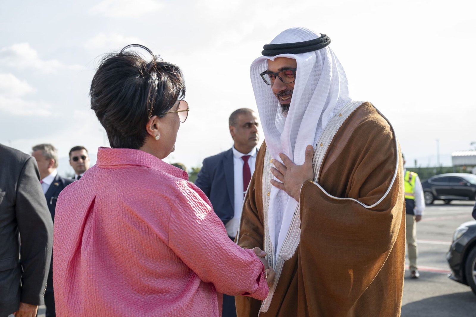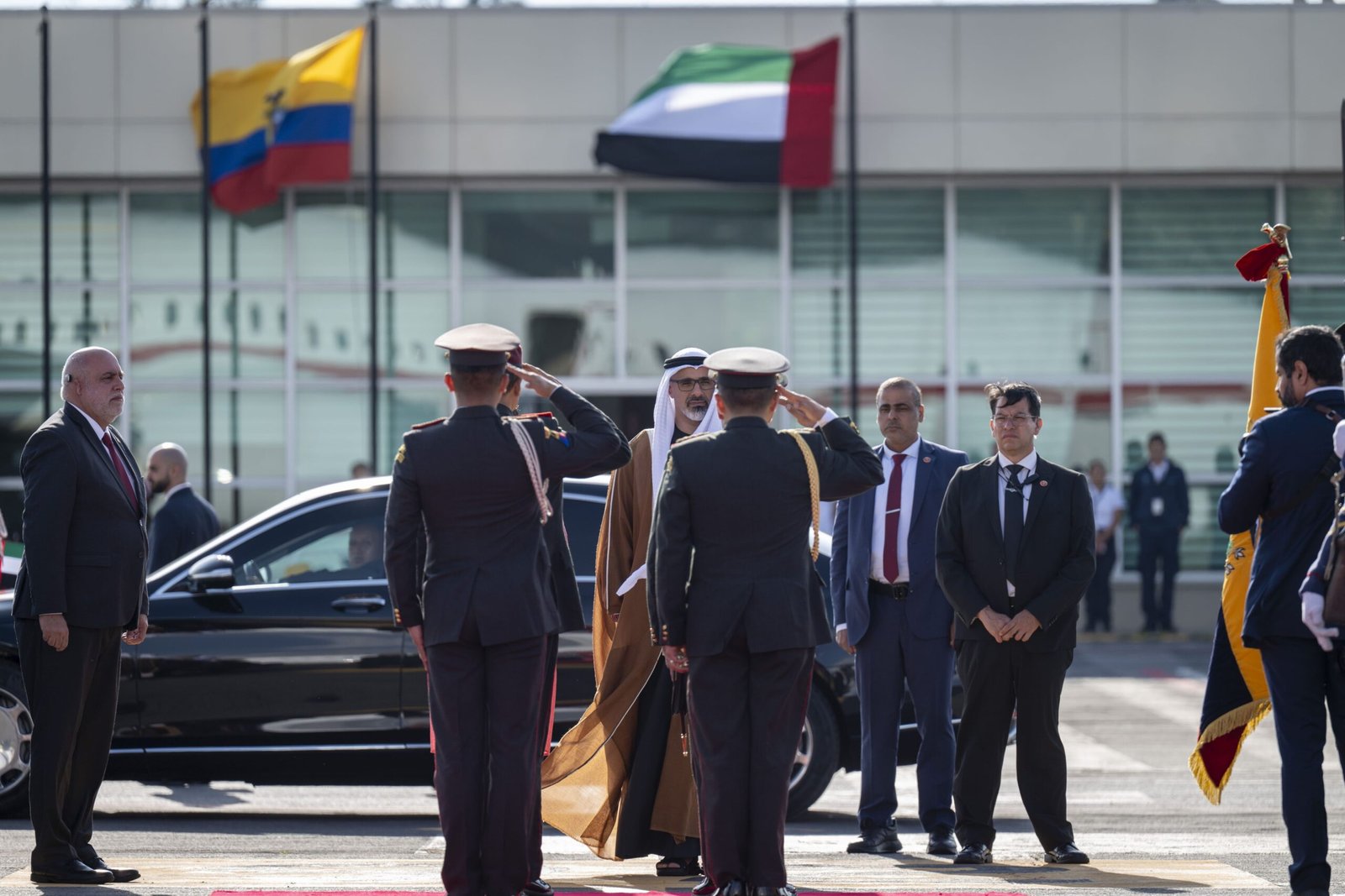 ورافق سموّه، خلال هذه الزيارة، وفد يضم كلاً من معالي الشيخ خليفة بن طحنون بن محمد آل نهيان، رئيس ديوان ولي عهد أبوظبي؛ ومعالي حميد عبيد أبو شبص، رئيس جهاز الإمارات للمحاسبة؛ ومعالي مريم عيد المهيري، رئيس مكتب أبوظبي الإعلامي، مستشار العلاقات الإستراتيجية في ديوان ولي العهد؛ ومعالي غانم سلطان أحمد السويدي، مستشار الشؤون الأمنية في ديوان ولي العهد؛ وسعادة إبراهيم سالم العلوي، سفير الدولة غير المقيم لدى جمهورية الإكوادور؛ وعمر الزعابي، رئيس الشؤون التجارية في مجموعة “ايدج”.