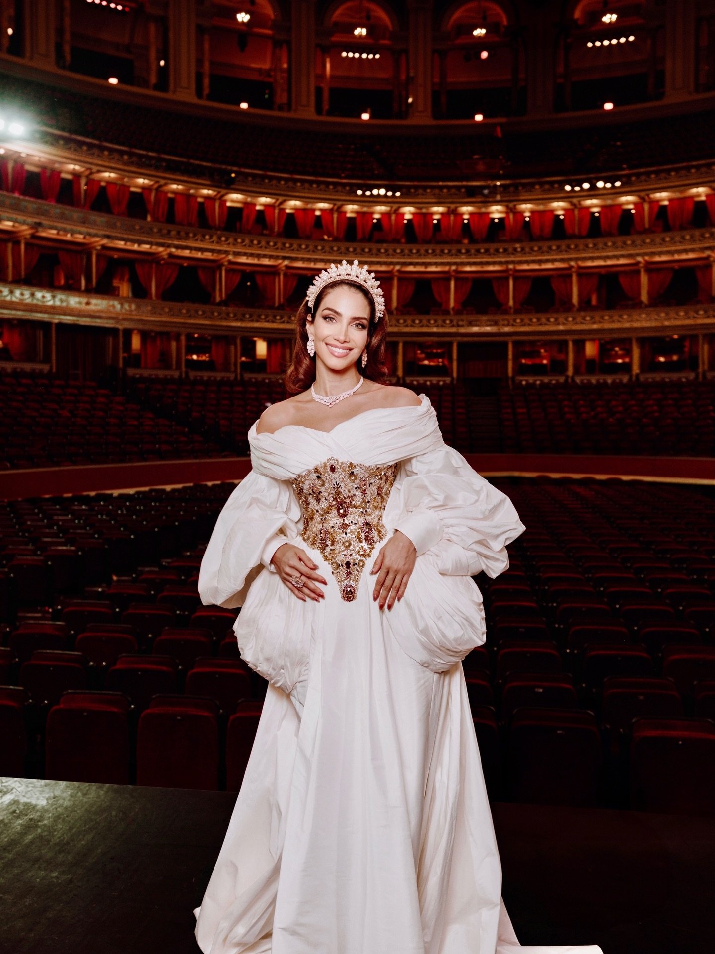 ليحمل ظهورها على مسرح Royal Albert Hall رسالة جمالية تحتفي بتاريخ الفن العربي وأناقة المرأة المعاصرة في آنٍ واحد.